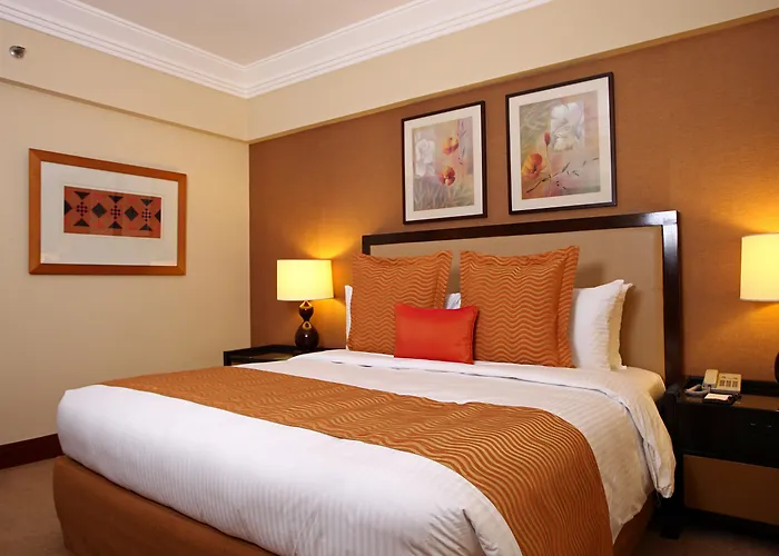Diamond Hotel Philippines er et 5-stjernede hotel beliggende i Manila Bay distriktet i gåafstand fra Plaza Rajah Sulayman. Alle gæster kan nyde højhastigheds internetadgang på alle værelser og adgang til en helseklub.